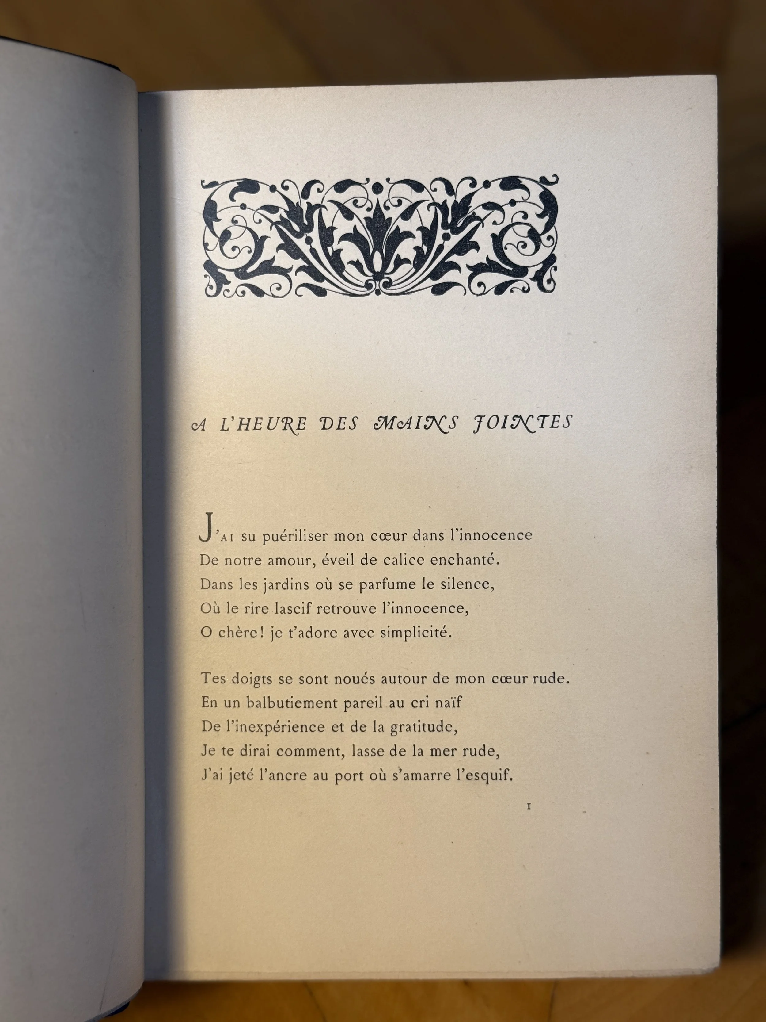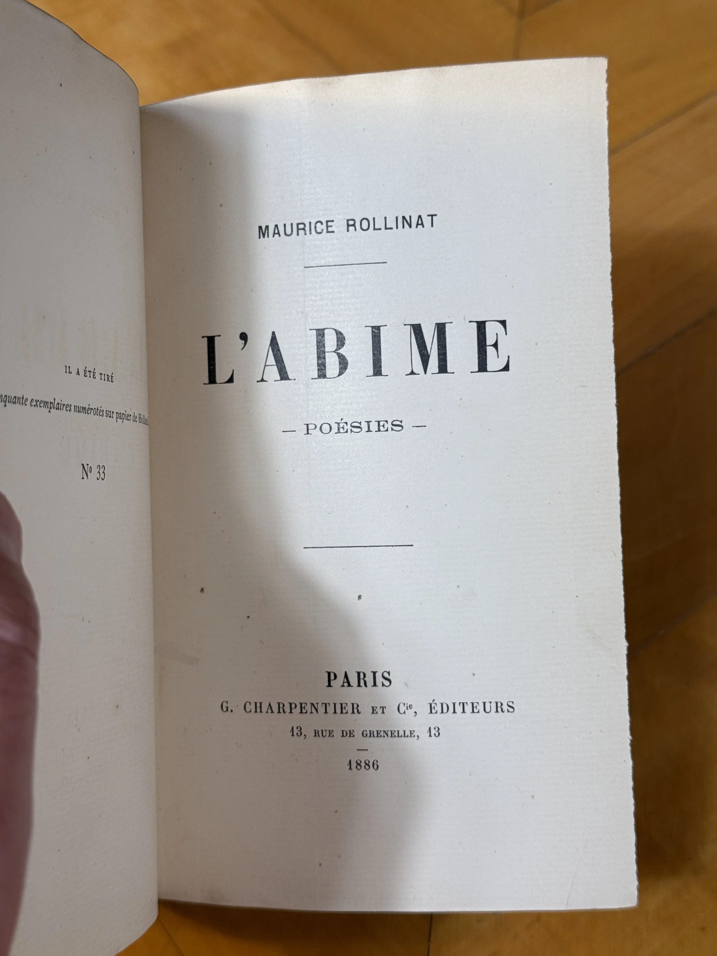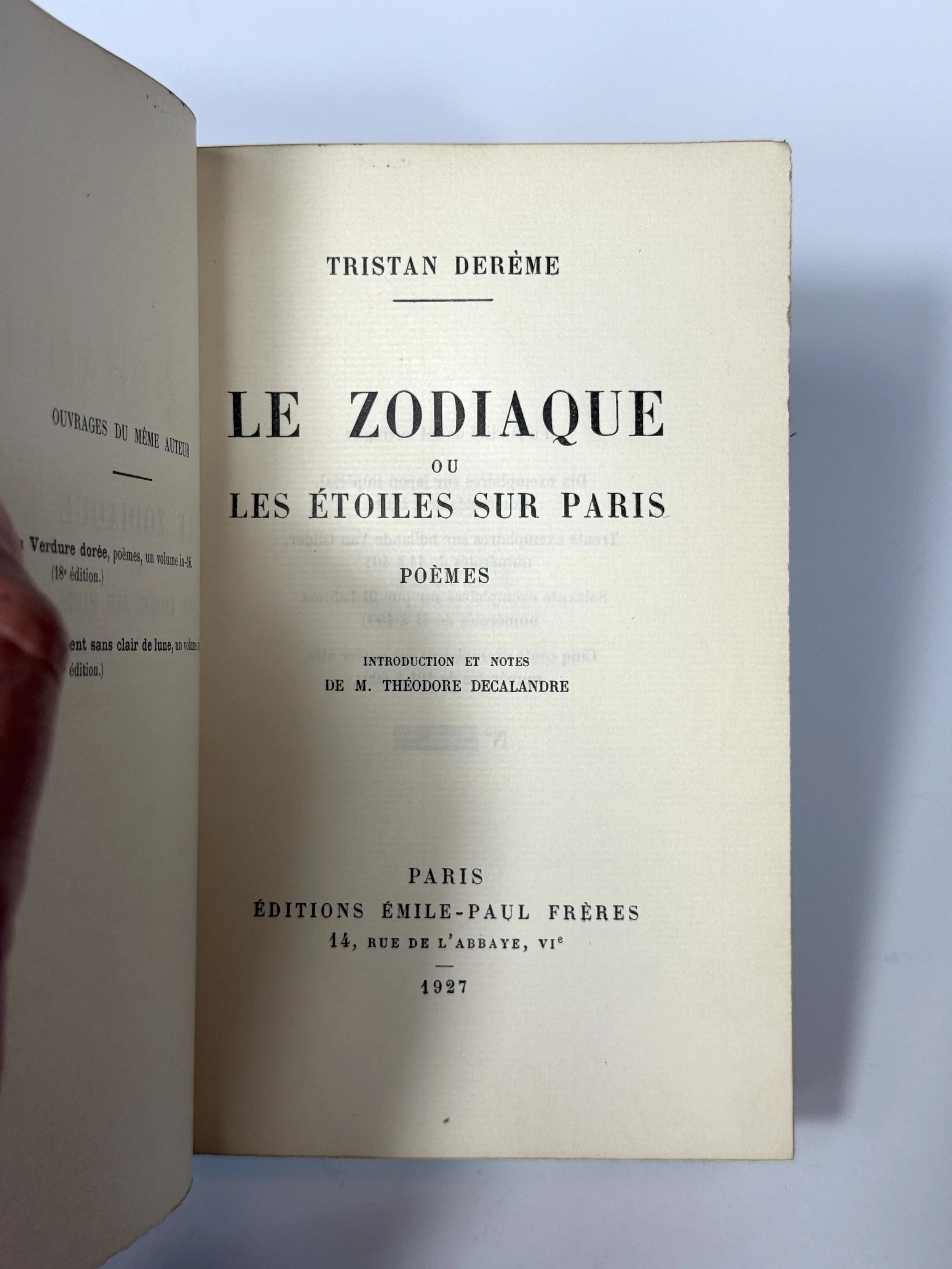 Poésie Catégories : Tous Bouchor Édition originale Apollinaire Derème De Vigny Fagus France Anatole Gourmont Guérin Lamartine Rollinat Renée Vivien Thibon Verlaine Poésie Tous | Bouchor | Édition originale | Apollinaire | Derème | De Vigny | Fagus | France Anatole | Gourmont | Guérin | Lamartine | Rollinat | Renée Vivien | Thibon | Verlaine | L'enlèvement sans clair de Lune, DERÈME Tristan 350,00 CHF Ajouter au panier Ajout effectué ! Les Chansons Joyeuses, BOUCHOR Maurice 250,00 CHF Ajouter au panier Ajout effectué ! Danse macabre, Fagus 600,00 CHF Ajouter au panier Ajout effectué ! Le Zodiaque ou Les Étoiles sur Paris, Derème Tristan 350,00 CHF Ajouter au panier Ajout effectué ! La verdure dorée, Derème Tristan 180,00 CHF Ajouter au panier Ajout effectué ! Fêtes Galantes, Verlaine Paul 850,00 CHF Ajouter au panier Ajout effectué ! Le flâneur des deux rives, Guillaume APOLLINAIRE 3 500,00 CHF Ajouter au panier Ajout effectué ! Les poëmes dorés, France Anatole 1 400,00 CHF Ajouter au panier Ajout effectué ! Poëmes Saturniens, VERLAINE Paul 6 000,00 CHF Ajouter au panier Ajout effectué ! Les Destinées. Précédées de Moïse. DE VIGNY Alfred. 600,00 CHF Ajouter au panier Ajout effectué ! Le Latin mystique, GOURMONT (Rémy de) 600,00 CHF Ajouter au panier Ajout effectué ! Offrande du soir, Thibon Gustave 1 000,00 CHF Ajouter au panier Ajout effectué ! À l'heure des mains jointes, Vivien Renée 300,00 CHF Ajouter au panier Ajout effectué ! Évocations, Vivien Renée 250,00 CHF Ajouter au panier Ajout effectué ! L'abîme, Rollinat Maurice 800,00 CHF Ajouter au panier Ajout effectué ! L'homme intérieur, Guérin Charles 350,00 CHF Ajouter au panier Ajout effectué ! Le coeur solitaire, Guérin Charles 350,00 CHF Ajouter au panier Ajout effectué ! La chute d'un ange, LAMARTINE, Alphonse de Jocelyn 150,00 CHF Ajouter au panier Ajout effectué !